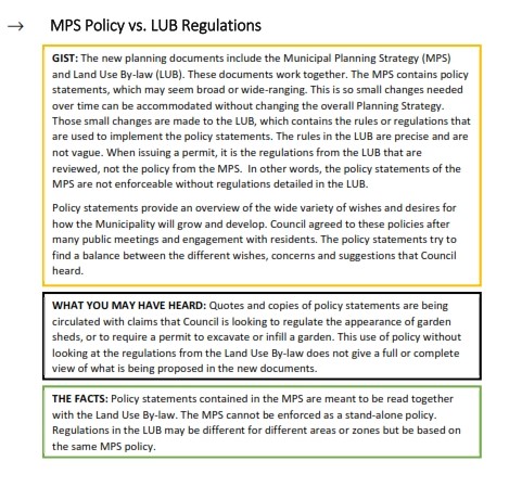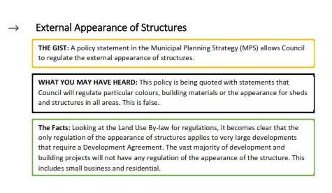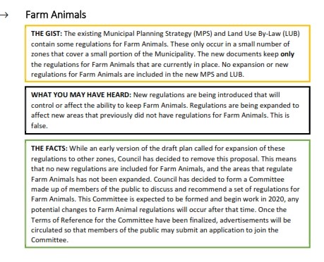 As we move toward the Public Hearing for the new Municipal Planning Strategy and Land Use By-law (November 25, 2019 at 7:00 pm at Forest Heights Community School), we have heard many questions and some concerns over the new regulations. Council and staff want you to understand the potential changes to your communities so you can provide comments and suggestions, but it is important that the information you receive is accurate.