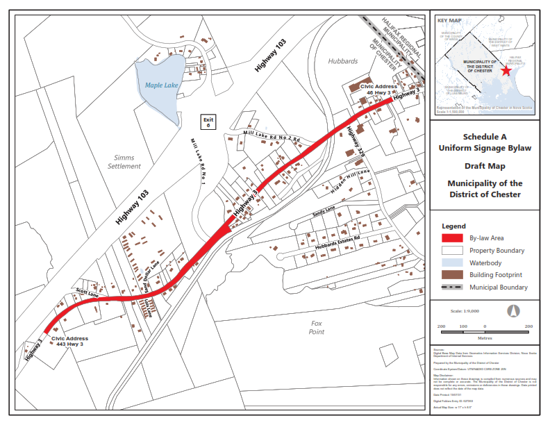 Council made a motion to approve First Reading of the draft by-law on July 22, 2021. This means that once public feedback is received, it will be moved to Second Reading and then adopted. There will be an AD in the local paper 14 days prior to Second Reading. Once adopted, the by-law will be effective within the pilot area of Exit 6. Owners of illegal signs will be notified by the Municipality via registered letter and will have 14 days to retrieve their sign before it is destroyed. Owners of existing signs in the pilot area (near Exit 6) were already contacted regarding the upcoming By-law and Program. We plan to reach out again in plenty of time for sign removal and awareness once the documents are in effect. The bylaw will provide opportunity for businesses within, and outside of the Municipality to display their business names. Applications will be accepted by the Municipality by owners that wish to advertise their businesses on the uniform signage. The by-law has been prepared to be applicable to all areas within the Municipality for future application assuming the program it well-received by the residents and business owners. This will include a similar by-law adoption process and will need again, need Council approval and public notice. The pilot program at exit 6, identified in the map is anticipated to be implemented in Spring of 2022.