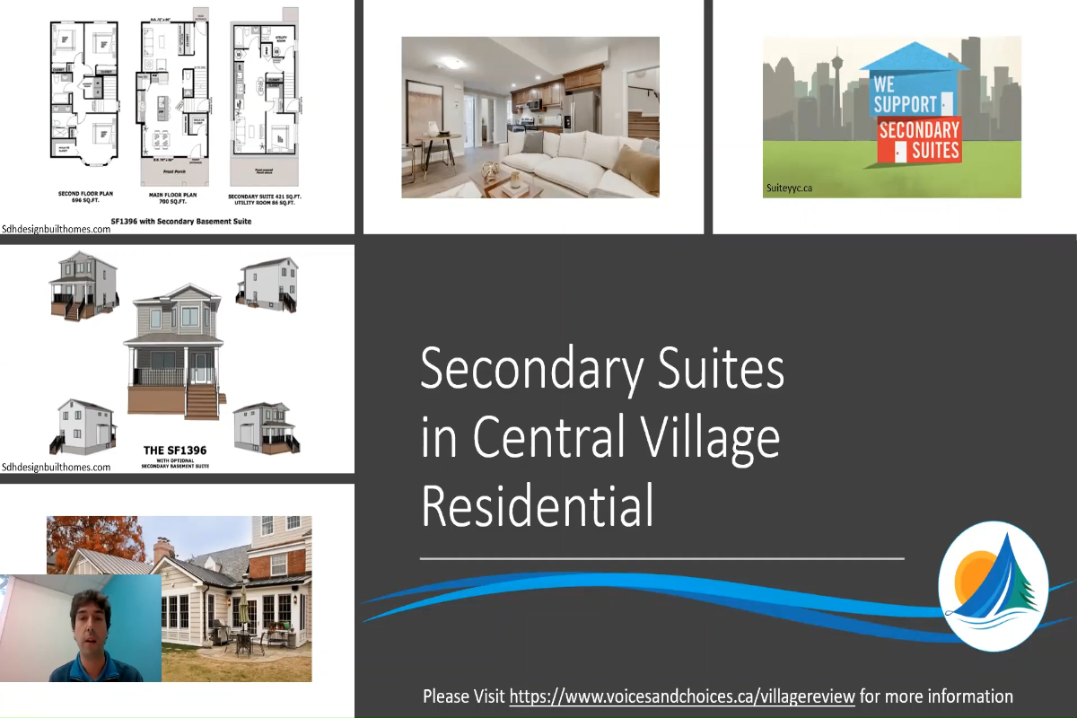 Click here to play video Secondary Suites in Central Village Residential This video presentation has been prepared by Municipal staff to provide information on Secondary Suites. This idea is a cornerstone for affordable housing options in North America. We want your thoughts and ideas on Secondary Suites, please make sure to leave a comment or suggestion!